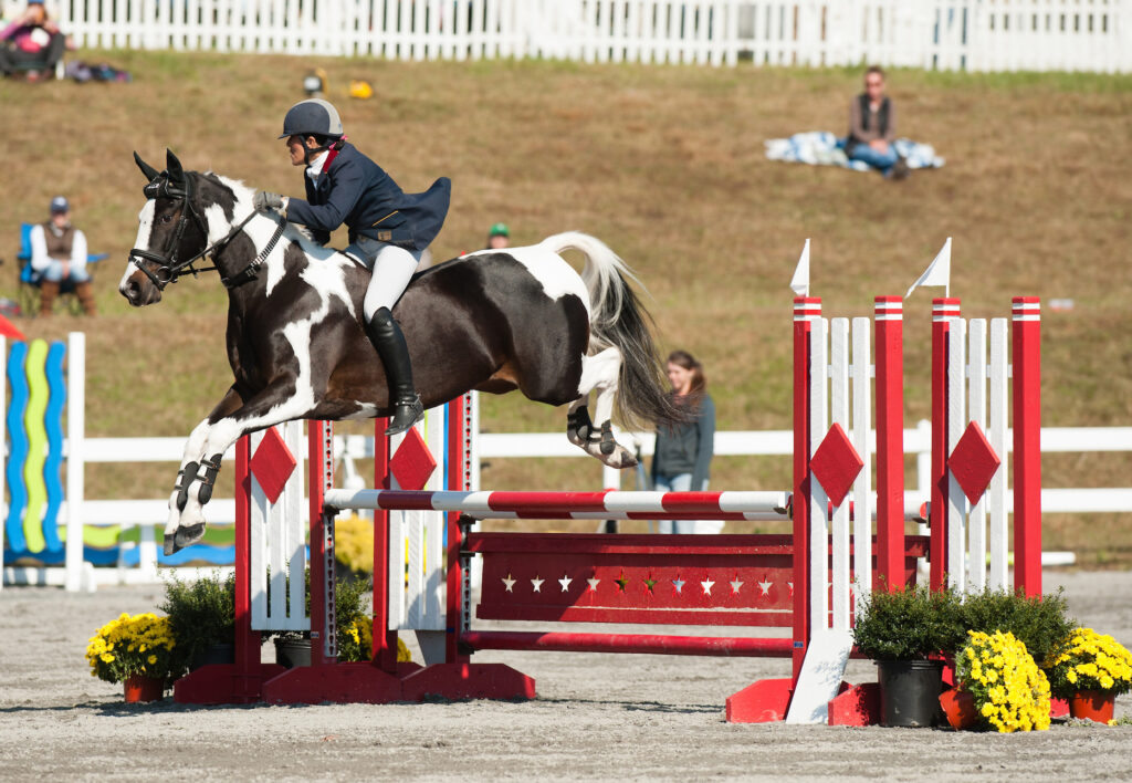 There are even exclusive bareback competitions. Here, five-star eventer and grand prix show jumper Laine Ashker competes in the PRO Bareback Show Jumping Challenge. ©Amy K. Dragoo