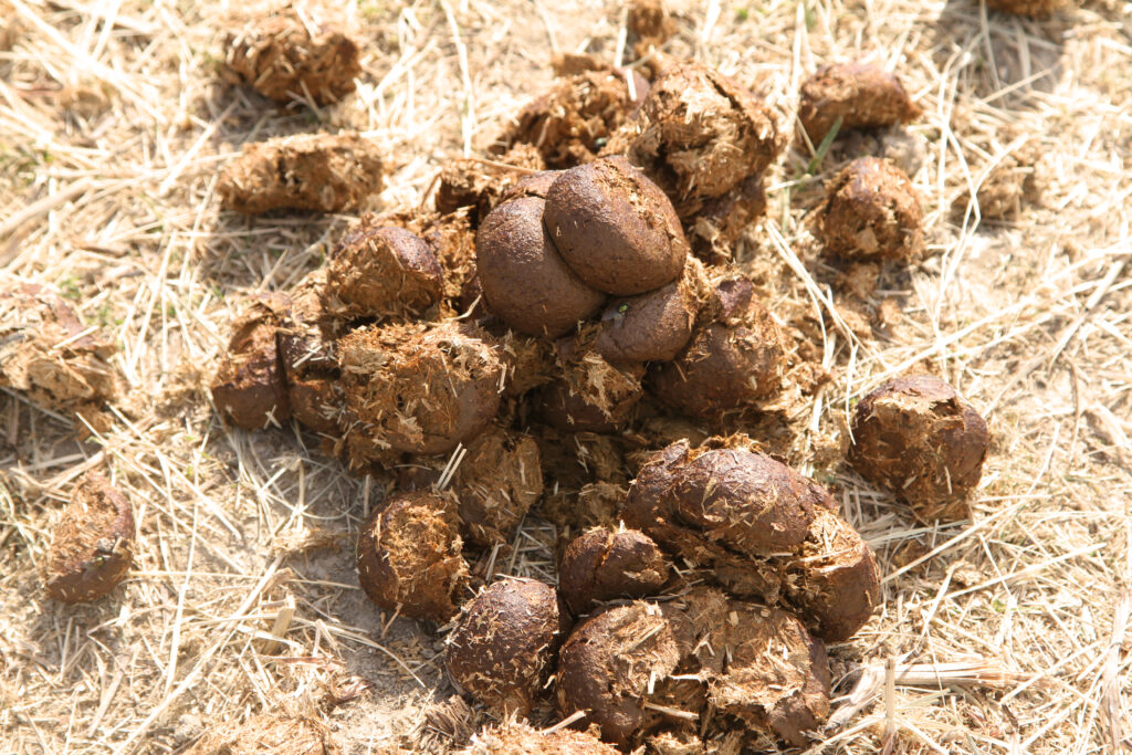 Many internal parasites begin life as eggs in manure piles. ©Alana Harrison