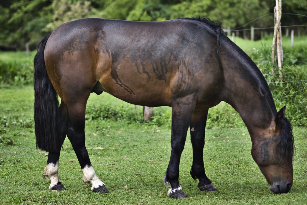 After a wet spring with frequent rain and the appearance of fiercely biting insects, you may notice your horse’s coat is not blooming quite as well as you would like. His skin is dry with loose, flaky hair, or worse, he’s been losing patches of hair when you groom him and the skin feels crusty when you run your hand over his back. These are signs of a common skin condition called dermatophilosis, often known as rain rot or rain scald.