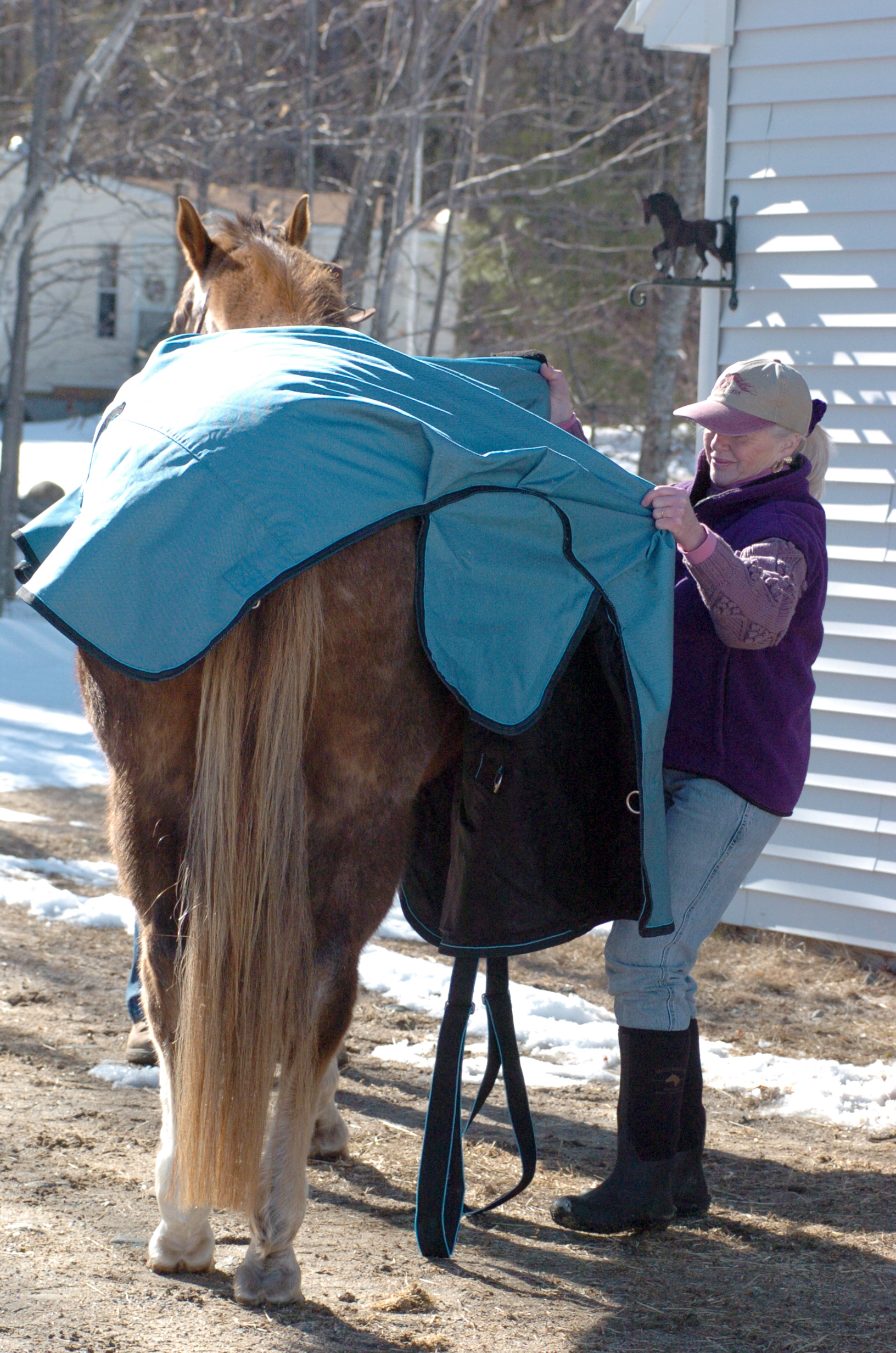 During the cold months, remove blankets every few days at least to check over a horse’s body and skin condition, Max advises. If possible, leave blankets off for a while so the skin can breathe. Check regularly to make sure your horse is not sweating under his blanket and remove it if he is damp.