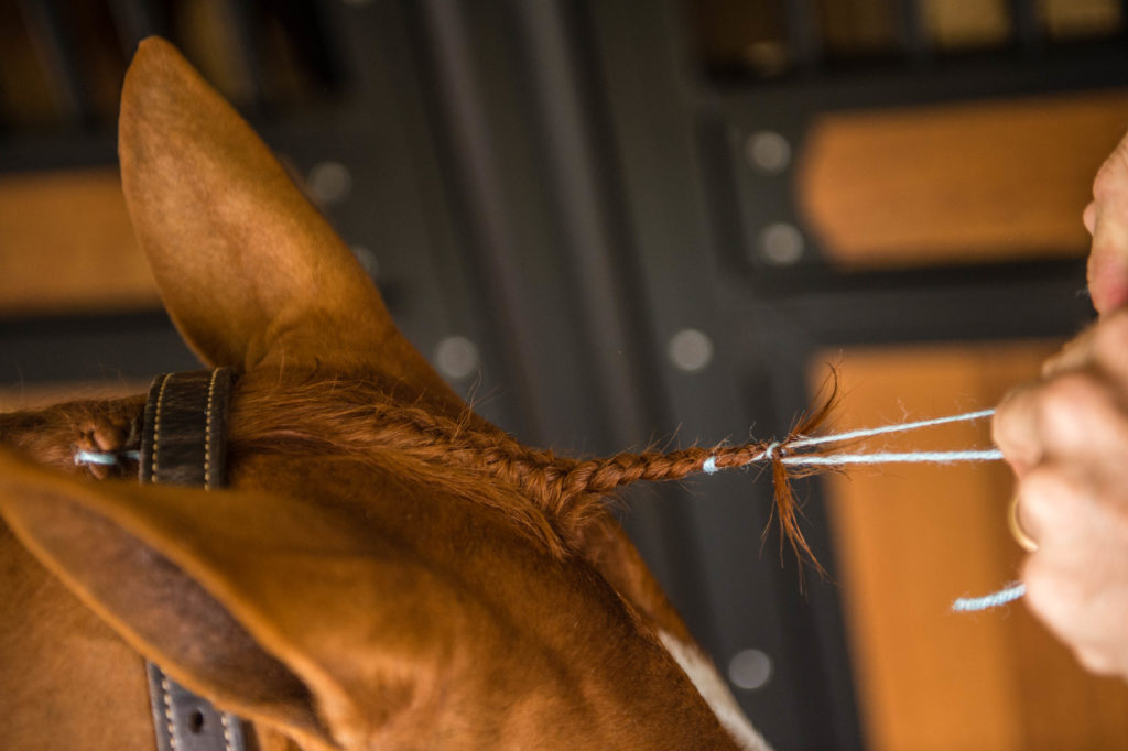 The main purpose of braiding is to enhance the horse’s appearance. A good braid job—neat, tidy and uniform—shows the judge that you are a winner. A bad one—loose, messy and unkempt—is distracting and gives the impression that you don’t care about your presentation. Braiding is all about the economy of motion and getting into a rhythm. To do a good braid job takes practice, but it doesn’t have to take so long that you’re tired and frustrated by the end of it. Instead, it’s about having a sensible and effective system that doesn’t wear you out. Eventually, your muscle memory will take over and braiding will become instinctual. In this article, I’ll explain not only how to make beautiful mane and forelock braids for the hunter ring but how to do so methodically and efficiently.