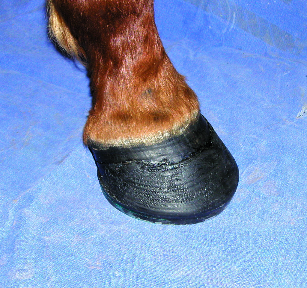 Acrylic and urethane adhesives are also being used to repair toe and quarter cracks and similar injuries to the hoof wall. “I see less use of screws and wires for this,” says Dave, who has been shoeing horses for almost 50 years. The new materials bond better than those used in the past, he adds, and when mixed with various fibers can be used to rebuild badly damaged hooves. These reconstructions are strong enough that often a regular shoe can be nailed on.