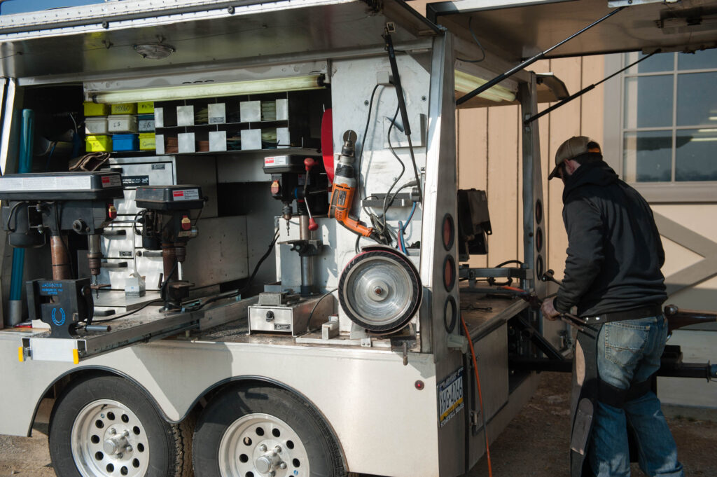 Advances extend right down to the nails. “Manufacturers are producing better-quality nails and nails that are sized for use with specific shoes,” Dave says. Copper-coated nails, first used in Europe and available this year in the United States, are the latest development. Dave has been using them in a trial for about a year. Copper-coated nails, he explains, may help prevent infections in cases of a nail prick (when the nail impedes on the sensitive living tissues of the hoof). Much else has changed for the farrier, Dave adds. Traditional tools have been redesigned to be ergonometric, so they fit the farrier’s hands better and make the job simpler and easier. And manufacturers are producing purpose-built trailers and truck bodies fitted out with roll-out power tools and everything else a farrier might need.