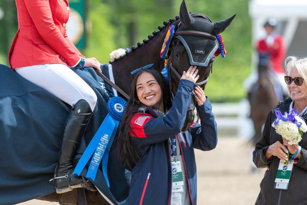 Mai Baum returned the favor by delighting his fans all week. On Thursday, his 22 dressage score broke The Event’s record, per EquiRatings data going back to 2008. He cruised around cross country Saturday and was cheered from start to finish. After double clear show jumping on Sunday, the 19-year-old German Sport Horse raced away from the finish line looking like he wanted to do it all over again.