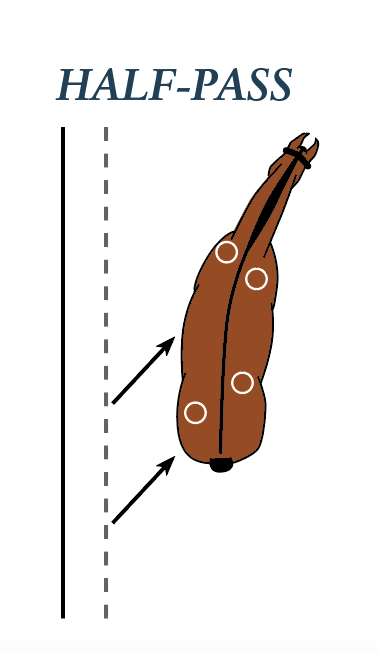 Now your horse is really stretched, and you’ve built up suppleness, strength and forward momentum. He should be ready to move laterally the instant you ask, listening to both legs and hands, which means he’s ready for a shallow half-pass.